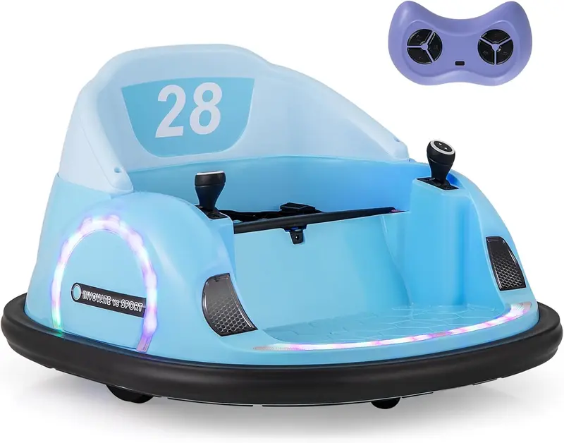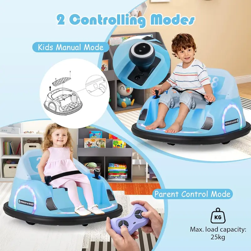 • [Dual Controlling Modes]This ride on bumper car featuresdual joysticksforkidstomastercontrol, alongside a convenient wireless remote letting parents keep adventures safer. Thanks to the integrated switch, you can easily choose between these 2 controlling modes.