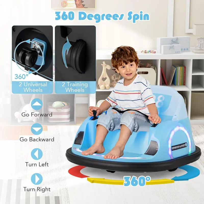 30 reviews for COSTWAY Kids Bumper Car, 360-Degree Rotation Spin Waltzer Cars with Joysticks, Remote Control, Colorful Flashing Lights and Music, Electric Ride on Toy for 18+ Months Old